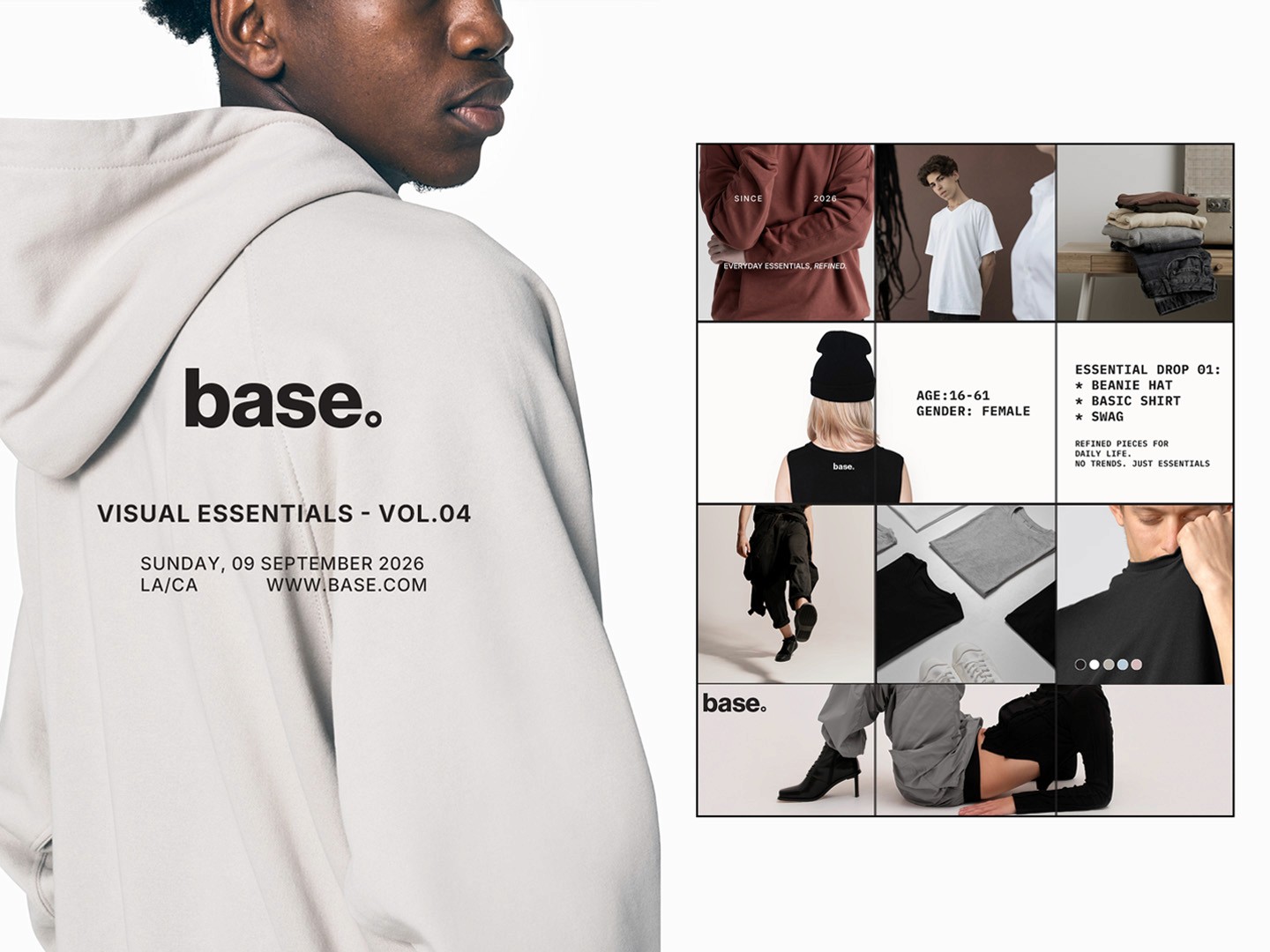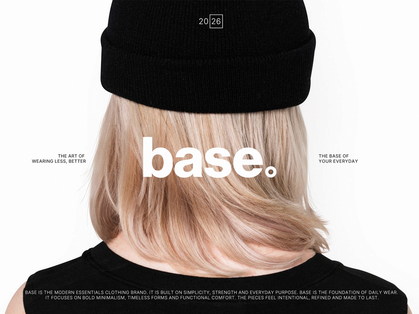 In a world full of noise, trends and constant change, BASE focuses on the essentials – the pieces that form the foundation of daily life. Every garment is intentionally stripped of excess and built on clarity, comfort, and strength. BASE is not about standing out loudly. The key is to show up with quiet confidence. The brand's bold typography, clean forms and timeless design represent stability and consistency. You can rely on the clothing.