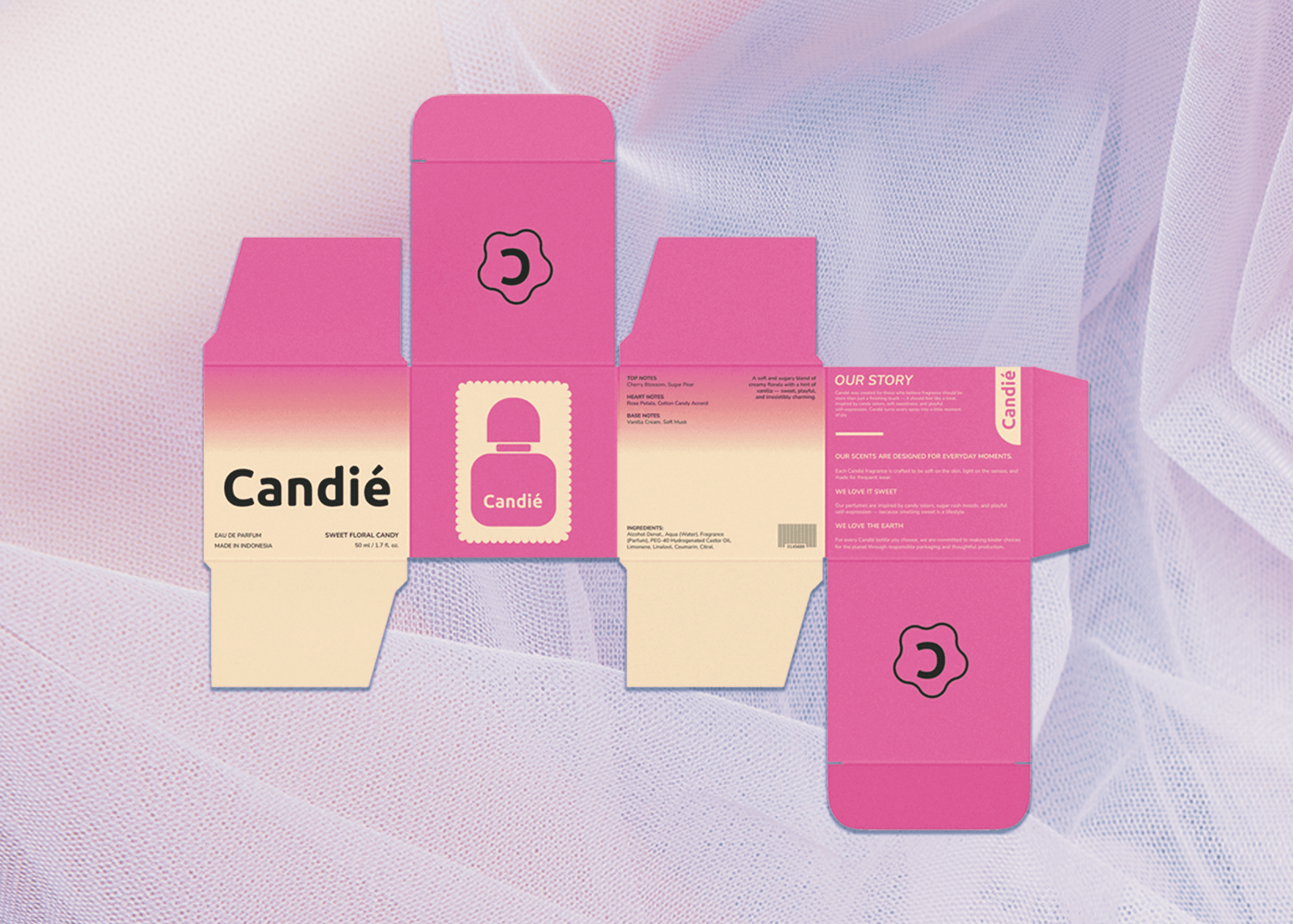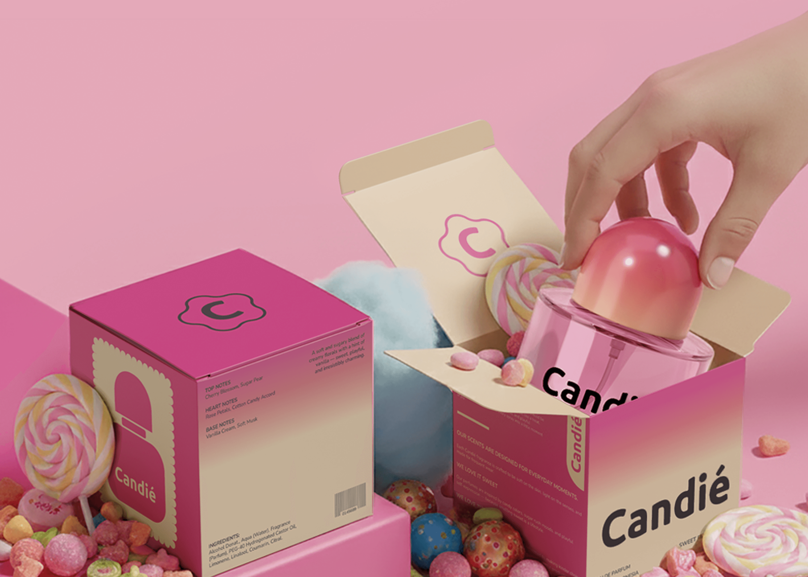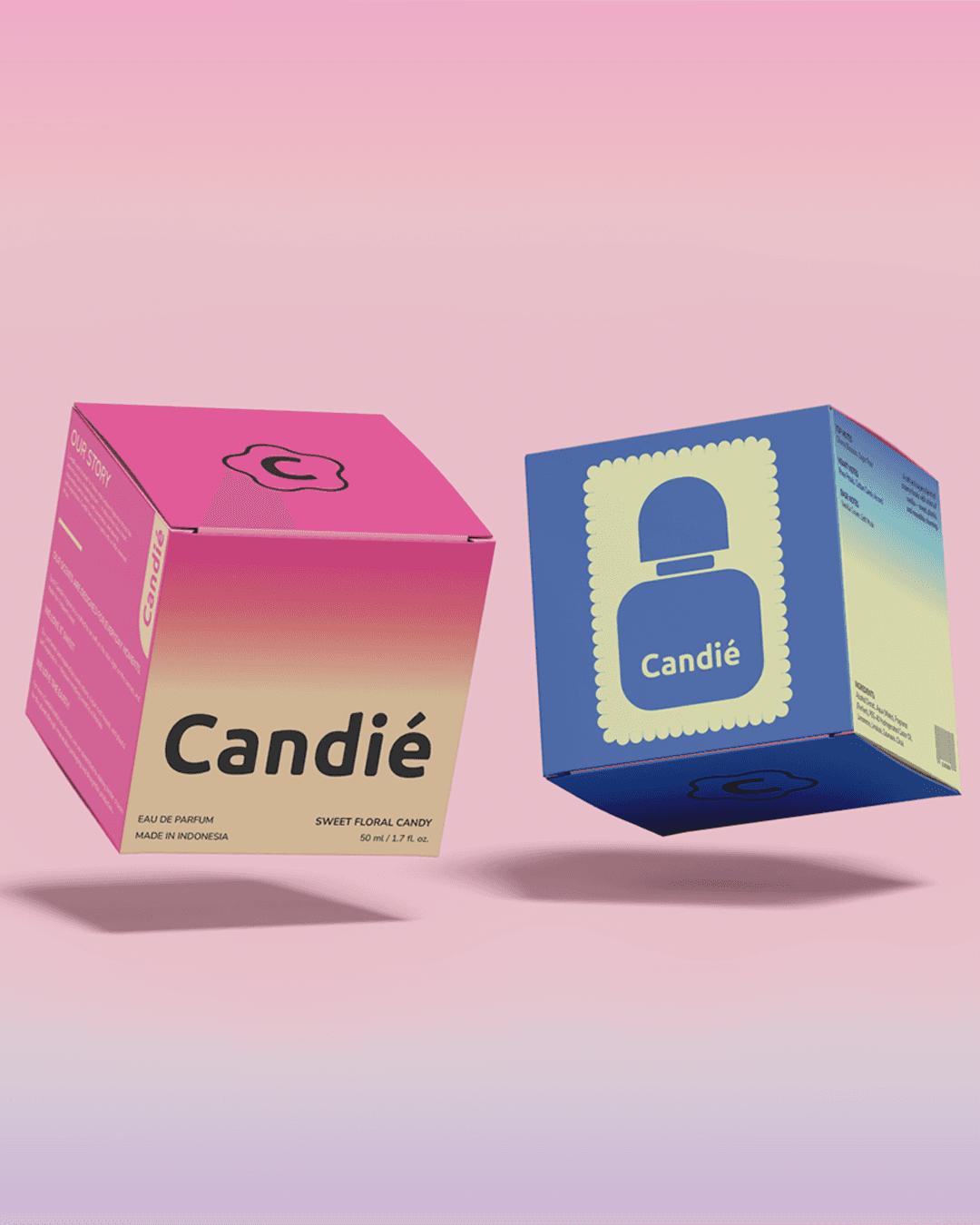 Candié is designed to turn everyday fragrance into a playful statement you’ll want to show off. Designed to be seen, styled, and spritzed often, Candié packaging combines pastel palettes, rounded typography, and confident layouts to create a collectible everyday perfume.